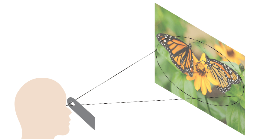 This experiment is an easy one for you to try: Just cover the lenses of some old glasses with black construction paper and cut a pea-sized hole in front of one eye. Then put on the glasses, sit back and wait for the movie to come to you!