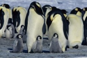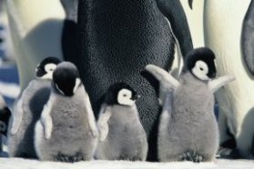 Mother penguins and their chicks, as seen in the movie March of the Penguins.