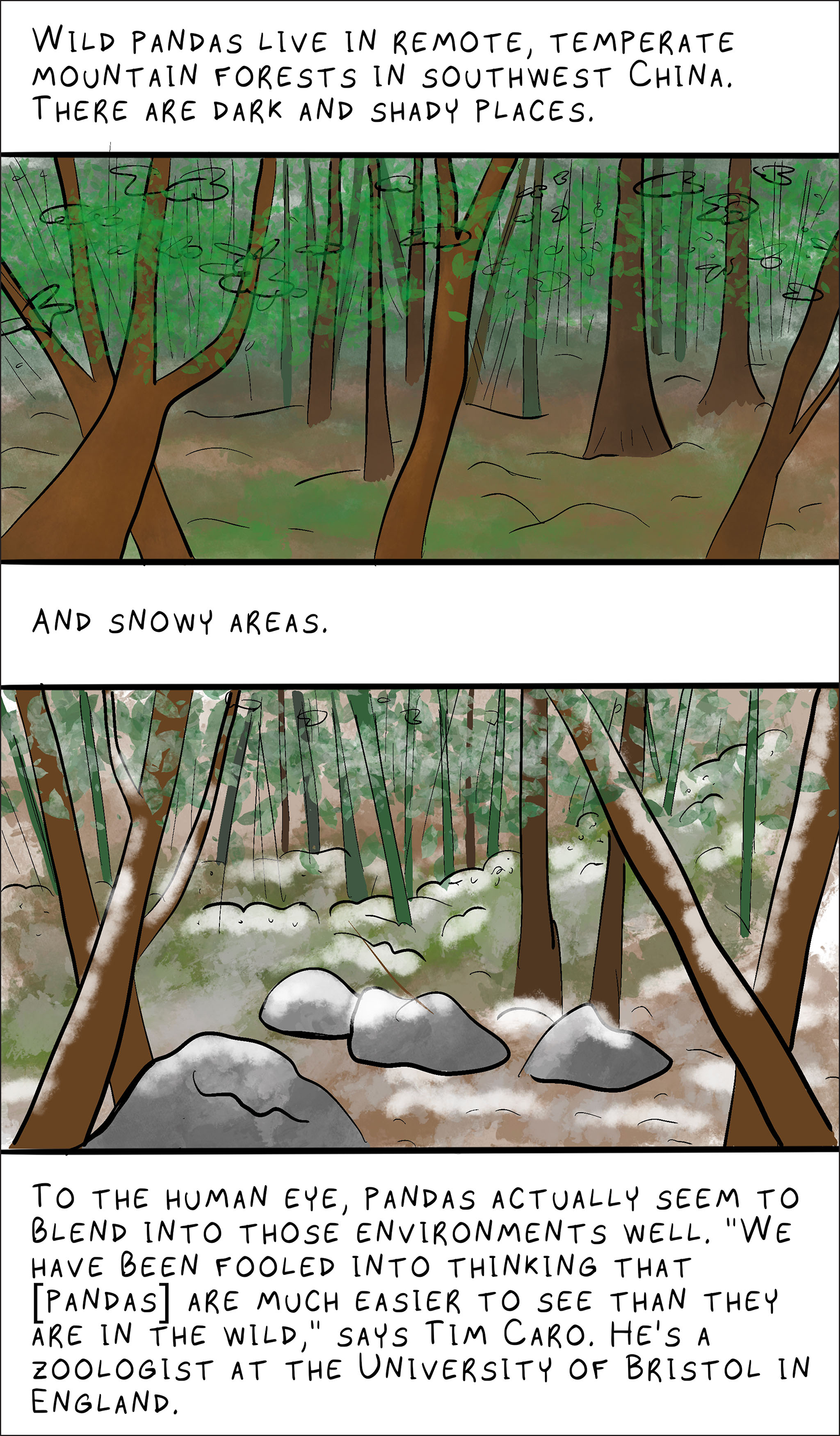 panda: (or giant panda) An endangered species in the bear family, found in the wild only in China. It has a distinctive white body with black coated limbs and dark spots around the eyes.