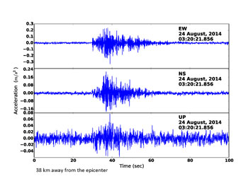 Kong studies earthquake detection systems at the University of California, Berkeley. For this graduate student, the Napa quake was real — and a test. Bleary-eyed, Kong stumbled out of bed and glanced at an instrument on his desk. He saw the familiar flurry of jagged lines that signal an earthquake had occurred.