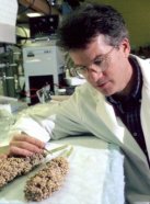 Food chemist Bruce Hamaker has studied a variety of foods. Here, he’s examining samples of sorghum. |