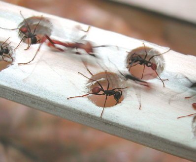 To see how such holes affect the ants, researchers drilled holes into strips of wood. They placed these strips in the ants’ main trail.