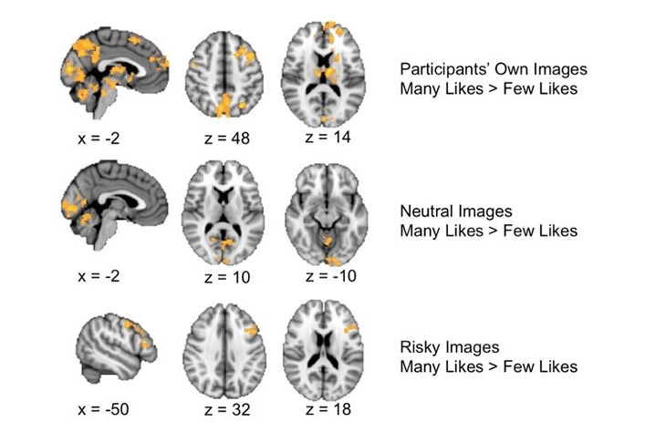 A like is a social cue, Sherman explains. Teens “use this cue to learn how to navigate their social world.” Positive responses to their own photos (in the form of many likes) tell teens that their friends appreciate what they’re posting. A brain responds by turning on its reward center.