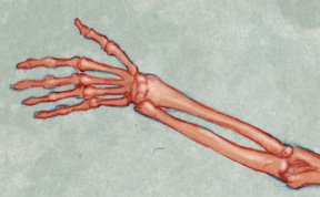 The bones of the forearm and hand.