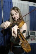 Linden Webster of Midlothian, Scotland, plays her violin as part of her physics project studying what factors affect a violin’s quality.