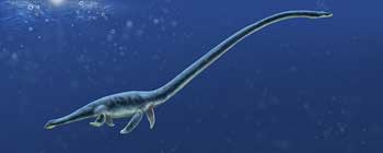 Plesiosaurs inhabited the seas from around 200 million to 65 million years ago. They were not dinosaurs, despite living at the same time as dinos. It is thought that plesiosaurs fed mainly on fish, breathed air and laid their eggs on beaches. The largest of these sea monsters reached 15 meters (49 feet) in length.