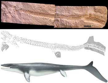 Some of these marine reptiles were shaped like dolphins and probably could swim fast. Some were as large and as long as a school bus. But they lacked the distinctive hip structure that only dinos had.
