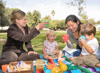 Eating well means stopping when you’re no longer hungry, and including a fruit and vegetable with every meal—even when you’re out picnicking. |
