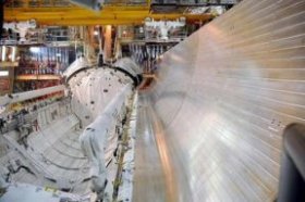 At NASA’s Kennedy Space Center, technicians installed the new Orbiter Boom Sensor System (center) and the Remote Manipulator System (left) in the space shuttle Discovery. The boom sensor system is one of the shuttle’s new safety measures, equipping the orbiter with cameras and laser systems to inspect the shuttle’s surface while in space. |