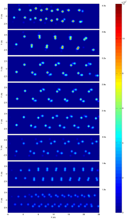 A collage of footprints, also known as trackways, for a walking Argentinosaurus. Detailed computer simulations help scientists determine what an extinct animal’s trackways might look like. The trackways here each represent a different walking speed. Footprints produced at intermediate walking speeds (third through fifth sets from the top) appear most like sauropod trackways preserved in ancient rocks and found by paleontologists. Credit: Sellers et al., PloS ONE 2013
