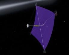 This illustration shows a NASA-developed design for a solar sail that would use sunlight to propel a spacecraft. |