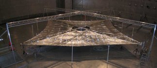 Last August, in a NASA project involving solar sails, researchers spread out the four blades of a giant solar sail for testing in a vacuum chamber. |