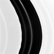 A close-up of a gap within one of Saturn’s rings shows curious ripples and other delicate features.