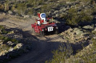 Carnegie Mellon University’s robot vehicle, Sandstorm, navigates hilly terrain. |