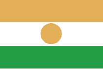 Niger’s flag has three equal, horizontal bands of orange, white, and green, with a small orange disk in the middle band representing the sun.