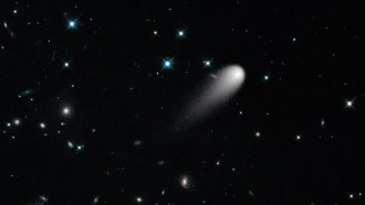 comet A celestial object consisting of a nucleus of ice and dust. When a comet passes near the sun, gas and dust vaporize off the comet’s surface, creating its trailing “tail.”