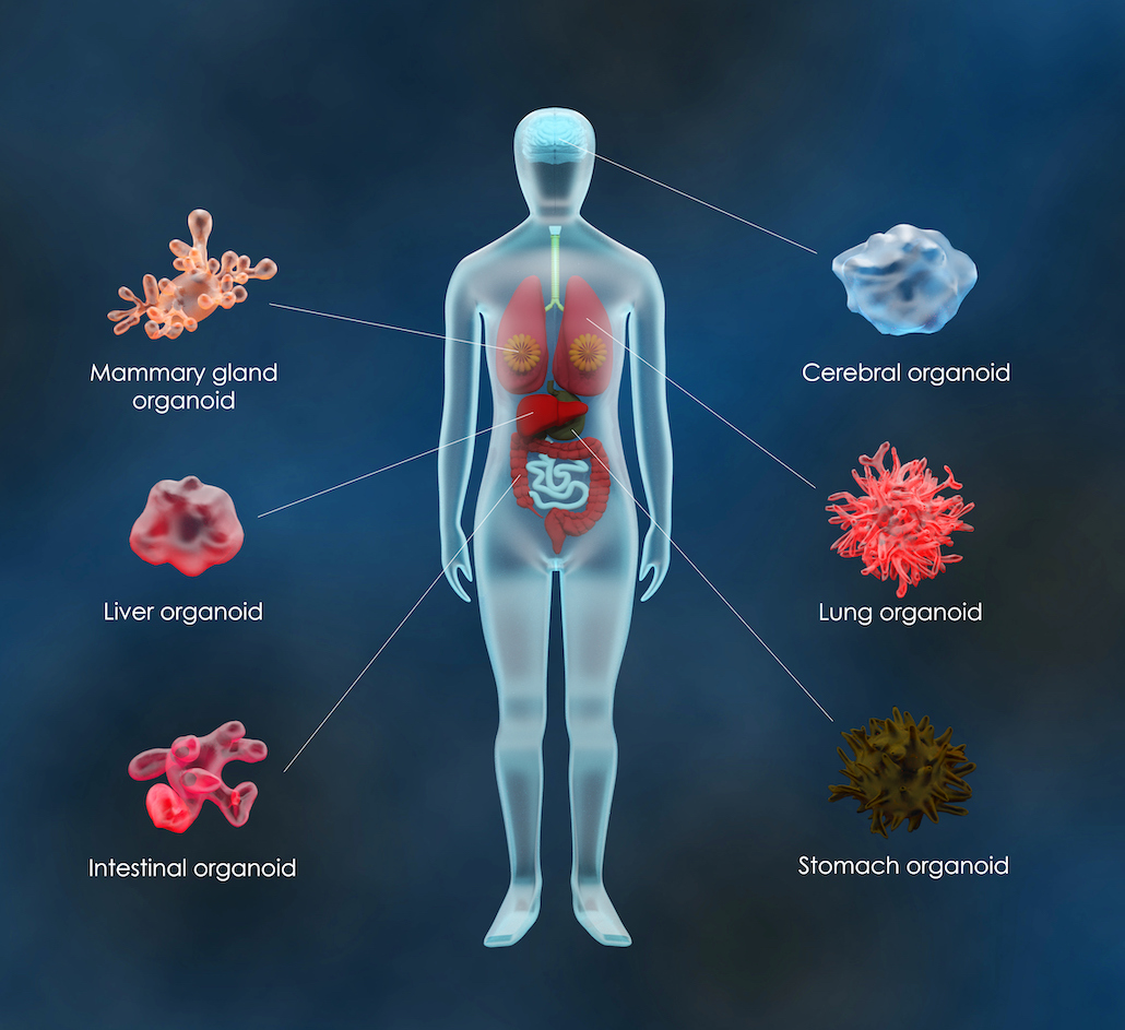 organoid: A mass of cells grown artificially (usually in a laboratory) to form some desired structure that resembles some organ in shape, function or both.