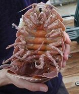 This giant deep-sea isopod has evolved to a much larger size in deeper water. These isopods are distant relatives of the tiny pill bugs found in many gardens. They are also related to small, shallow-water isopods that live in tide pools.