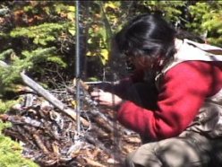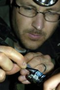 Researcher Rebecca Holberton removes a blackpoll warbler from a net used to trap these birds for study.