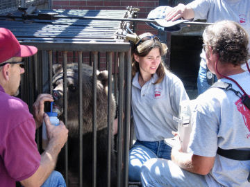 Lynne Nelson and colleagues at the WSU Bear Research Center have trained grizzlies to cooperate in experiments.