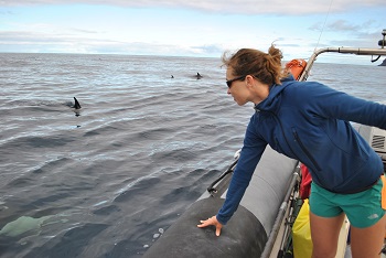 Fleur Visser, a Dutch biologist, can see them, too. She angles the small, inflatable speedboat towards the fins. This group of dolphins always appear to move as a group. That’s how they’ve come to be nicknamed the Usual Suspects.