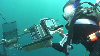 To find out, Cummings and her colleagues built a video polarimeter (PO-lar-IM-eh-ter). This is a camera that lets scientists see polarized light as fish do. The team used netting to hold a fish in place on an underwater platform against a mirror. Then they took pictures of the fish from more than 1,500 different angles.