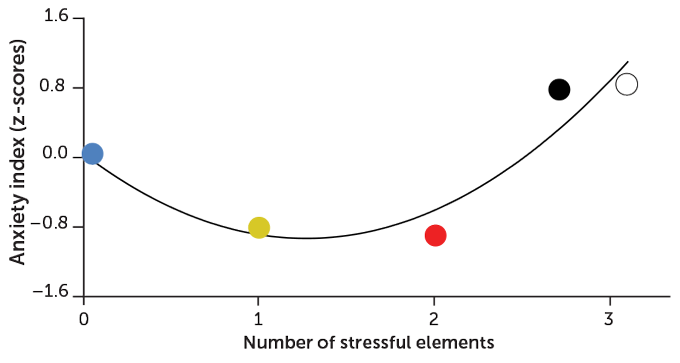 On the whole, monkeys that faced one or two stressors (groups 2 and 3) clung less to their mothers than those in the last two groups. They also more readily explored their new surroundings. In general, they showed less anxiety than both the no-stress and high-stress groups.