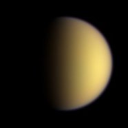 This image of Titan, taken by the Cassini spacecraft soon after it reached Saturn, shows the orange haziness for which the moon is famous.