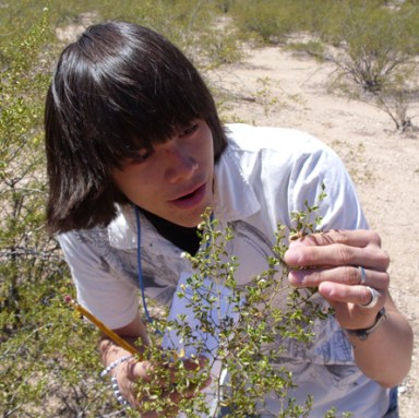 Kids in Arizona inspect plants for hints of early flowering.