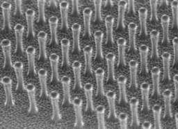An array of tiny plastic pegs mimics the microscopic structure of a gecko’s sticky sole.