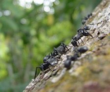 When worker Cephalotes atratus ants drop from high trees, they often control the direction of their tumbles to catch on to the trunk and then climb home. |