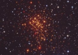 Just 10,000 light-years from Earth (a mere jog across town in space terms), the cluster measures 6 light-years across. Its weight, the astronomers estimate, is at least as heavy as 100,000 suns. The cluster’s name is Westerlund 1.
