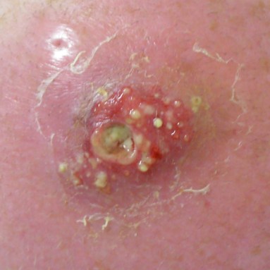 boils (in medicine) A skin infection that starts as a hard, red, painful lump. Eventually, it gets bigger, softens and fills with pus. A common source of these is a bacterium known as Staphylococcus aureus.