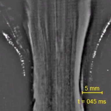 Finally, because everything happens so fast when the rock moves through water, the scientists had to find a way to slow down time. As the disc moved through the water, the scientists took pictures with a camera that captured 15,000 frames every second. (That’s faster than most movie cameras.) After the experiment, the researchers could slow down the movie and, aided by computer simulations, calculate the speed of air as it blew out of the hourglass-shaped tube.