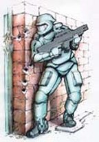 A form-fitting robotic suit, or exoskeleton, could help a trooper on the battlefield. |