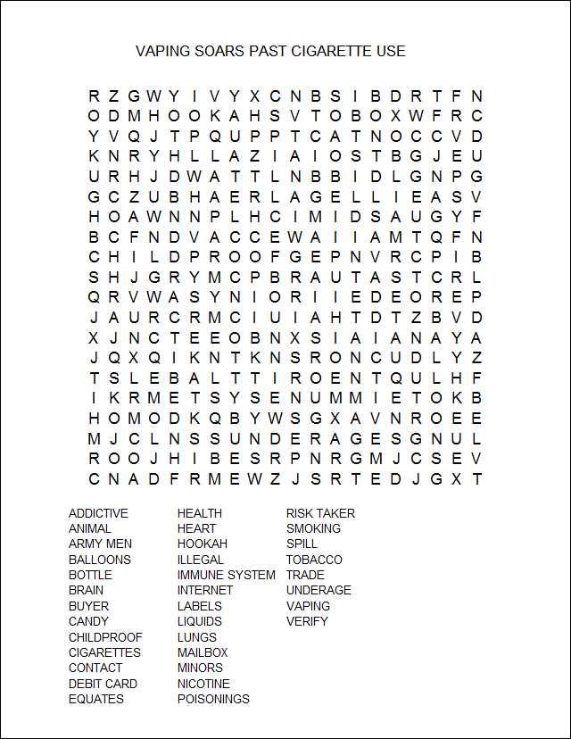 Overall, last year, one in every four high-school students and more than one in every 14 students in middle school used some form of tobacco products. And yes, e-cigarettes are considered a tobacco product. The fluid or e-liquid that they heat up to create their vapors contains nicotine. It’s the chemical in tobacco leaves that makes tobacco so stimulating to the brain — and so addictive.