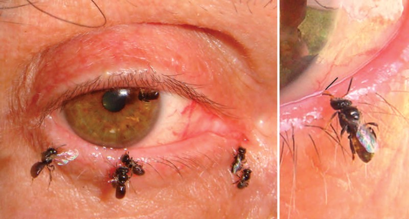 The bees didn’t have to try all that hard to find the eye juice they sought. Bänziger said he could smell a pheromone — a chemical attractant released the bees — that soon lured in more of the bugs. And human eyes appeared to be a real treat for the tiny buzzers. When a dog ambled by during one testing session, the bees sampled its tears. However, the researchers reported, “we continued to be the main attraction even in the presence of the dog and for a good hour after it left.”