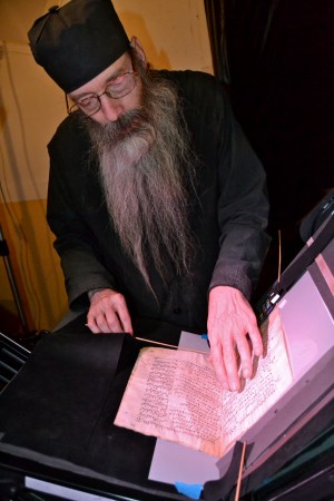 Father Justin Sinaites, St. Catherine’s head librarian, has spent years photographing the monastery’s manuscripts. These images make the rare and ancient books available to a wider audience. It also protects and preserves the words those books contain against threats from outside the monastery’s walls.