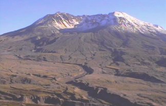 Mount St. Helens on a quiet day this fall, just before it spewed steam and ash into the air on Oct. 1, 2004.