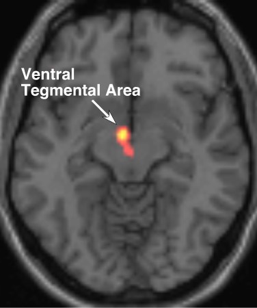 “What we’re seeing is the same response, more or less, that people show when they expect to win a lot of money or expect to have something very good happen to them,” Aron says.