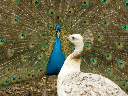 Peacocks don’t need all those feathers for finding food. The peahens, the name for females of the species, do just fine with small tails. Females have plainer colors too, so it’s hard to see how huge, jewel-colored tails could be so important for survival in the species’s males.