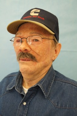 Billy Crawford, of Lockesburg, Ark., tries on a facial prosthetic created to match his skin tone and texture. Crawford lost much of the skin and underlying tissue on his upper face due to a skin infection.