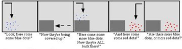 For the second experiment, the 5-year-olds saw one group of blue dots, which was followed by a second group of blue dots, which was followed by a group of red dots. This setup was more complicated than the first, but the kids were still able to say whether there were more blue dots altogether or red dots, suggesting that they could both add and compare amounts.