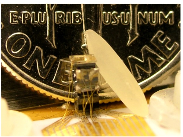 F2 is a mammoth device weighing about a ton, but not all atomic clocks are so hefty. In 2004, NIST created the world’s first atomic clock that’s small enough to fit on a computer chip. While not nearly as accurate as F2, it’s inexpensive, takes little power to run and is smaller than the grain of rice and dime, with which it is shown here.