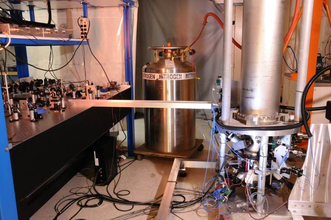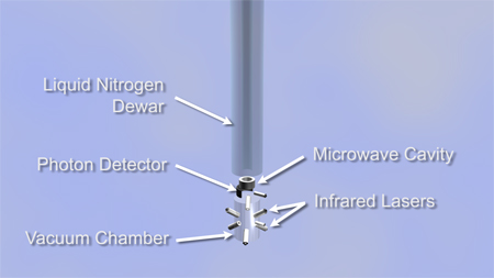 But the heart of the system is invisible to the eye: a pool of cesium atoms sailing around inside a near-vacuum within that big tube.