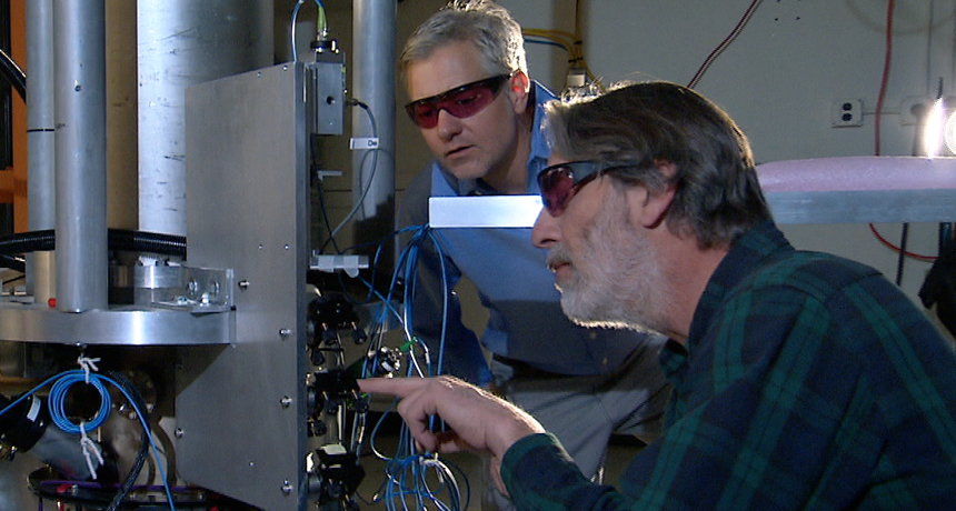 Because atomic motion relates to temperature, these suddenly stalled atoms now have a temperature of only about a millionth of a degree above absolute zero, O’Brian explains. (NIST is experienced at this laser cooling. Its physicists pioneered the process back in 1978.)