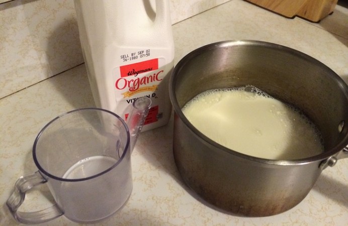 We start with some whole milk from your local store and a little heavy cream. There’s a lot of water in milk and cream. But these dairy products also contain many fats, proteins and sugars. Those proteins — principally casein and whey — are the most important components needed for cheese.