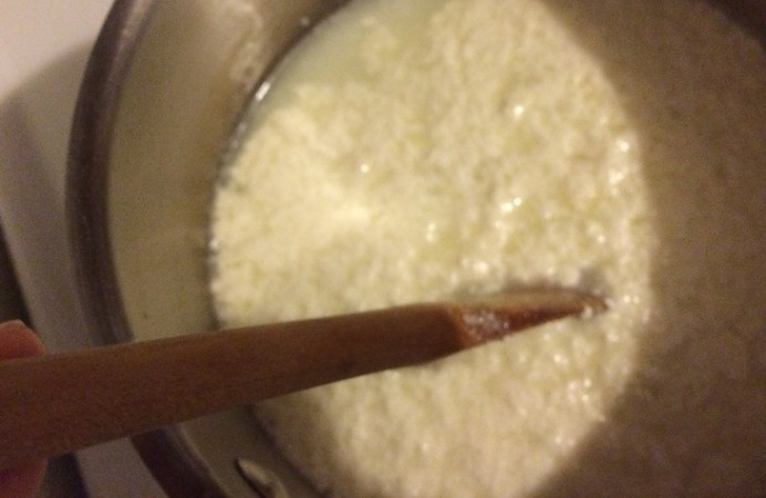 To promote micelles clumping, you need two things: acid and heat. I got the first from buttermilk, which contains a lot of lactic acid. But you could also use vinegar or another acid.