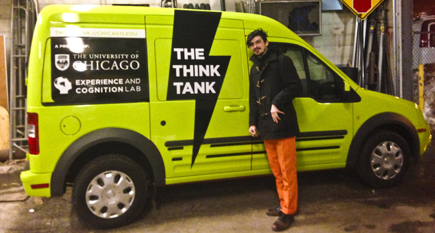 That’s the idea behind the Think Tank, a new kind of neuroscience outreach. The Tank itself is a bright green van with a plastic brain on top. Alterman and cognitive neuroscientist Dan Casasanto from the University of Chicago are using the van to bring neuroscience anywhere with a parking spot. Step inside the vehicle and into a world of neuroscience.