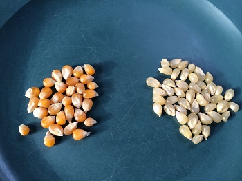 That was my own hypothesis — an idea that I could test. At my grocery store, the white popcorn’s kernels tended to be smaller than the yellow ones. So I hypothesized that those white kernels should pop first.